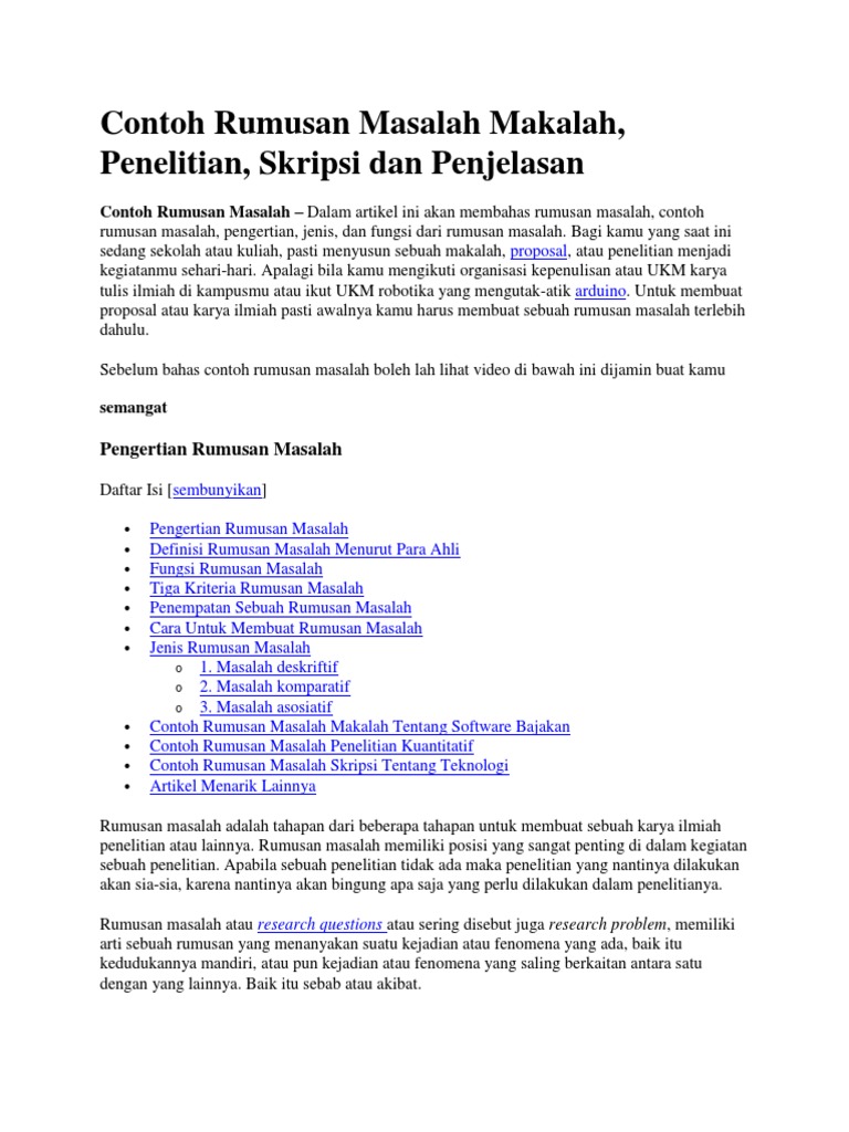 Lengkap Contoh Rumusan Masalah Makalah Penelitian Dan Skripsi